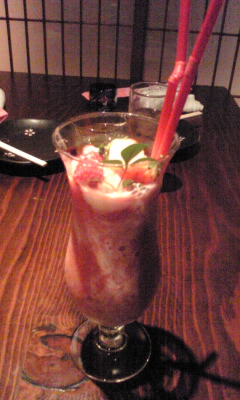 お酒の味とかまったくしなくて、中に苺のフローズンらしき、シャクシャクしたものが入ってて、お替りしたいくらい美味でございましたvv
