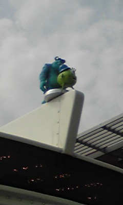 バスの先頭のてっぺんにはサリーとマイクが♪