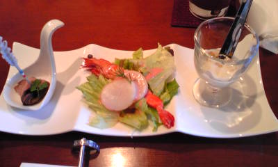 鴨肉とホタテとエビとオマールエビのジュレなどなどvv