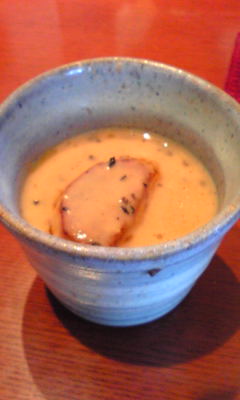 そして次はビストロヒロでの看板メニュー(勝手に)、フォアグラとトリュフの茶わん蒸し~~vvv