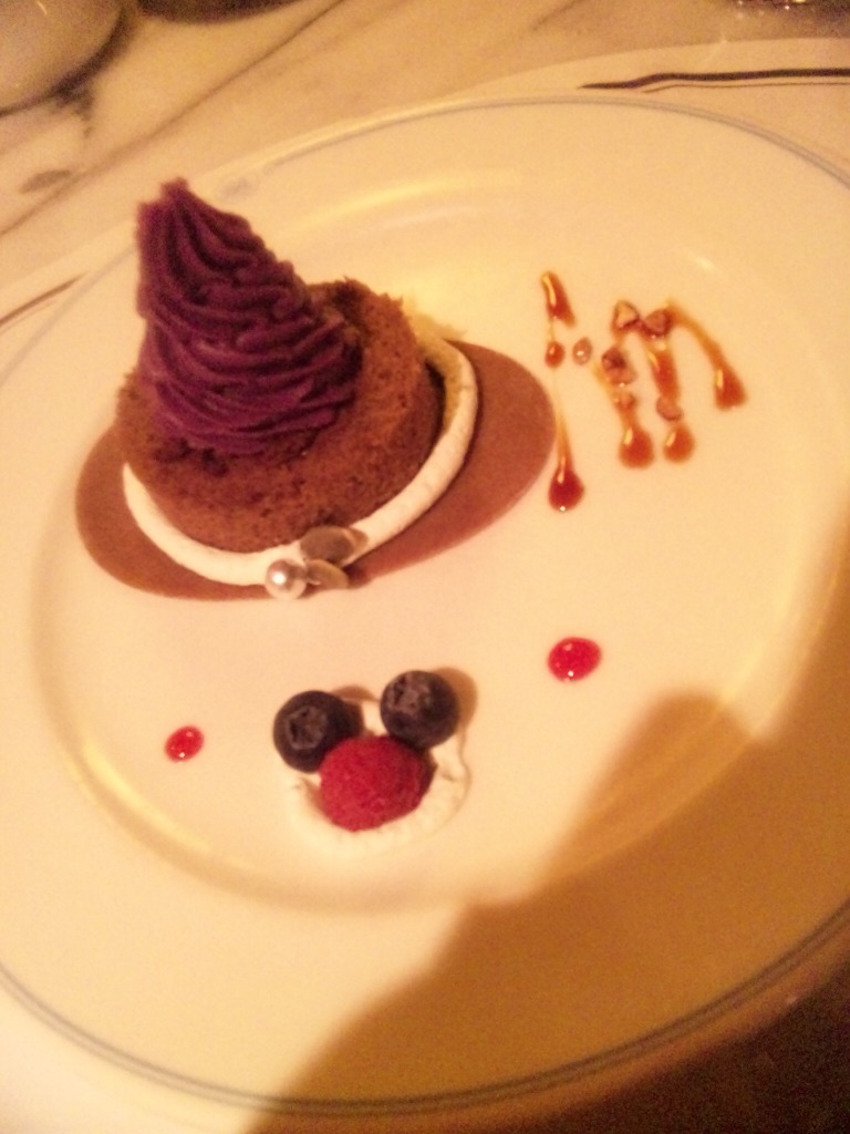 ちなみにあの場では食事中なので言えなかったんですが、最後のデザート紫芋のモンブラン。